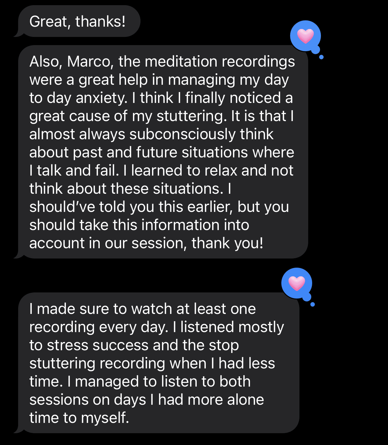 1st 3-Session Text Testimonial